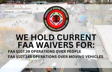 Simply put, we hold a waiver ( an official document issued by the FAA which approves certain operations of aircraft outside the limitations of a regulation ) from the FAA that allows us to legally fly over open air assemblies, like concerts, festivals, and such, which most sUAS pilots can’t do. Currently there are only a few options that legally allows this ( waiver or a Category 1 drone ). We can also fly over moving vehicles with this waiver! Let us help you get some unique video or photos from your event!
